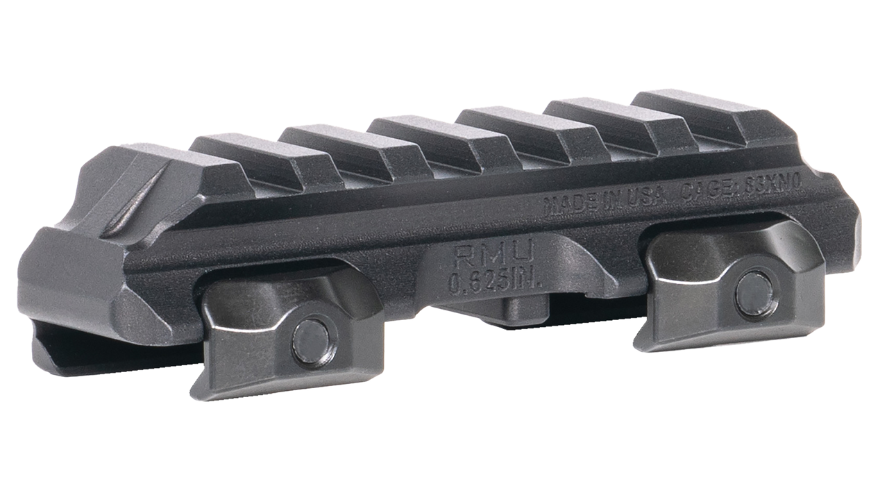 The RMU Mount by Reptilia is a lightweight, slim-line solution manufactured at the request of a DoD customer. The RMU Mounts are ideal for lifting a variety of optics with fixed height, lower 1/3 co-witness heights such as the EOTech line of holographic optics, Vortex Optics AMG UH-1, and Sig Optics ROMEO8T to an elevated height which is more ergonomic when using helmet-borne night vision or those who prefer a more upright shooting stance. The RMU Mount is machined from billet 7075-T6 aluminum with Milspec Type III hard anodized finish, the RMU Mount attaches to any M1913 Picatinny rail, and offers optimal sight placement with an increase in height of .625 inches. Its spring-loaded nitride steel clamp and mounting bolt simplify the installation process, and sit flush with the body of the mount for a low-profile, anti-snag design.